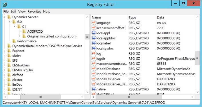 HKEY_LOCAL_MACHINE\SYSTEM\CurrentControlSet\Services\Dynamics Server\6.0\01\AOSPROD