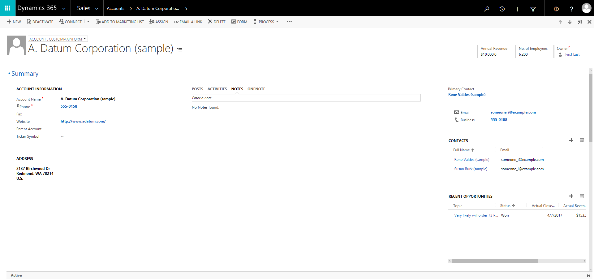 - Sub-grid header color can be customized at a control level. Customizers can choose to add a different color to different sub-grids present on the form for users to be able to easily distinguish between data on the form. E.g. the sub-grid below for recent opportunities has been marked in green to allow the users to easily identify it on the form.