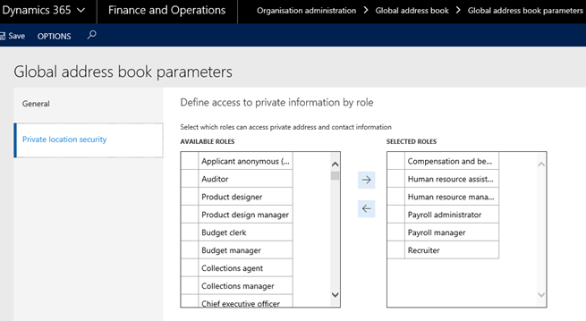 You can manage and control which security roles have access to this information by using the Global Address Book parameters>
