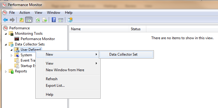 1. On a box that runs the AOS instance you want to collect event traces from, start Windows Performance Monitor and add a new User Defined Data Collector Set: