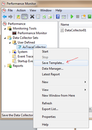 9. You may want to save the data collector set as a template and reuse the template on a different box, or share it with other users: Right click the Data Collector Sets and select [Save Template] menu item: