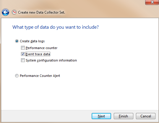 3. Check [Event Trace Data] under [Create Data Logs], and then click the [Next] button.