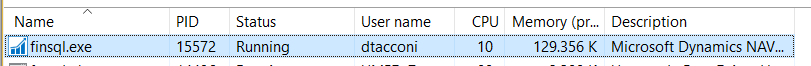 2) Use Task Manager to inspect the resource consumption by finsql.exe process