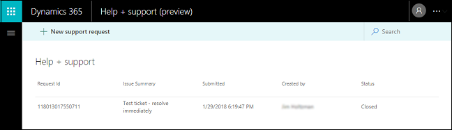 We’re happy to announce the launch of a new Help + support ticketing experience for admins to contact a Microsoft support representative for Dynamics 365 (online). The new process will help us improve your overall support experience and drive faster issue resolution.