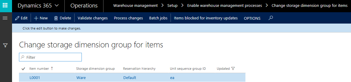 This blog describes the new capabilities that allow you to migrate existing items with open inventory transactions so they can use the new storage dimensions. This can be needed when you upgrade from older versions of Microsoft Dynamics 365 for Finance and Operations that supported the pallet dimension or if you want to use the Warehouse management functionality for existing items that were previously using WMS1 processes.
