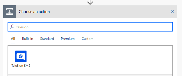 You probably want to notify the customer that the appointment has been created. This can be accomplished by sending them a text message. Add a new step and choose the Send SMS Message action under TeleSign SMS. It will ask you to connect to your TeleSign account. Enter the appropriate credentials to login and proceed.