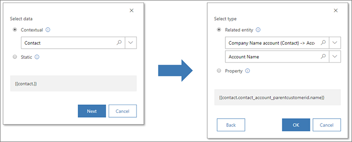 We’ve greatly improved the user experience for placing dynamic field values in your email messages with assist-edit. The feature was previously very compact, but a bit tricky to use—especially when traversing database relations. Now, we’ve implemented assist-edit as a two-step wizard that makes all dynamic values easier to place. It also makes relations much easier to identify and can now help you select fields from related entities.