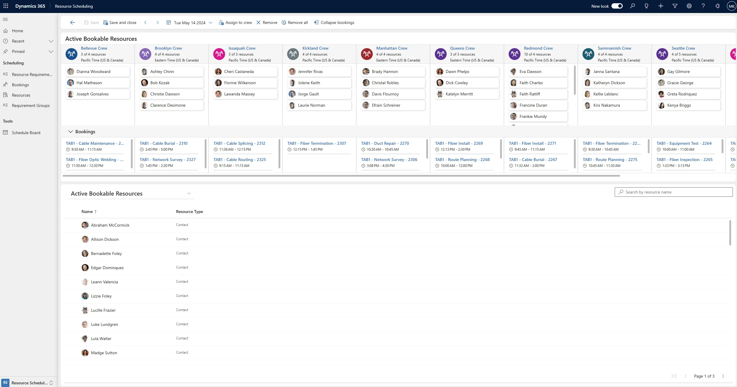 This also means that if you create a new booking for the crew on the active day, it will populate to your new resource’s schedule like any other crew member.