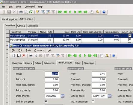 Sales and purchase prices in relation to the item price setup in Microsoft Dynamics AX 2009