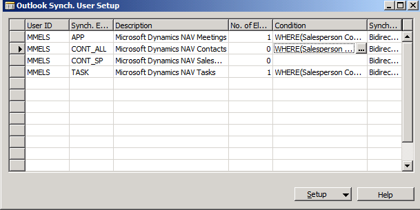 Last but not least, the Outlook Synch. User Setup form will have to be filled in with correct date.