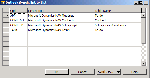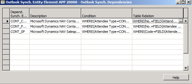 • Close the Outlook Synch. Entity Element APP 20000 – Outlook Synch. Dependencies form