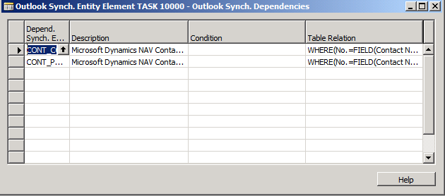 • Close the Outlook Synch. Entity Element Task 10000 – Outlook Synch. Dependencies form