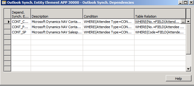 • Close the Outlook Synch. Entity Element APP 30000 – Outlook Synch. Dependencies form
