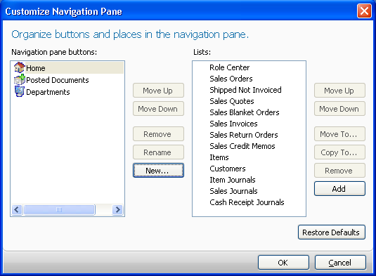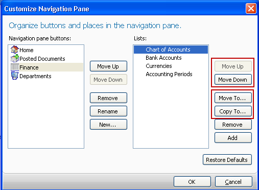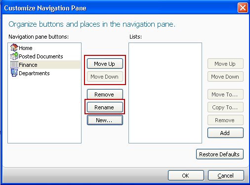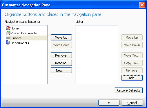 13. Use Move To and Copy To to move lists from one navigation pane button to another.