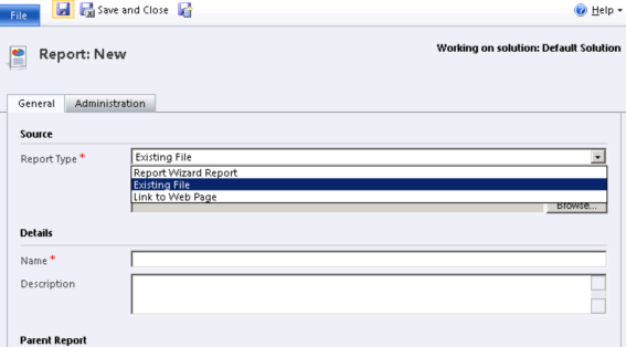 - The report should be an .RDL file that gets created; this file will need to be uploaded into the CRM environment