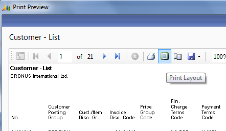 Then the preview will change its rendering to Print. Unless the report uses CurrReport.PREVIEW anywhere in C/AL code in which case the “Print Layout” button is not available.