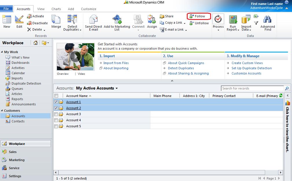 Here, we will go through the different ways you can follow records in CRM. Note that in order to follow any record of an entity, that particular entity must be enabled for Activity Feeds.