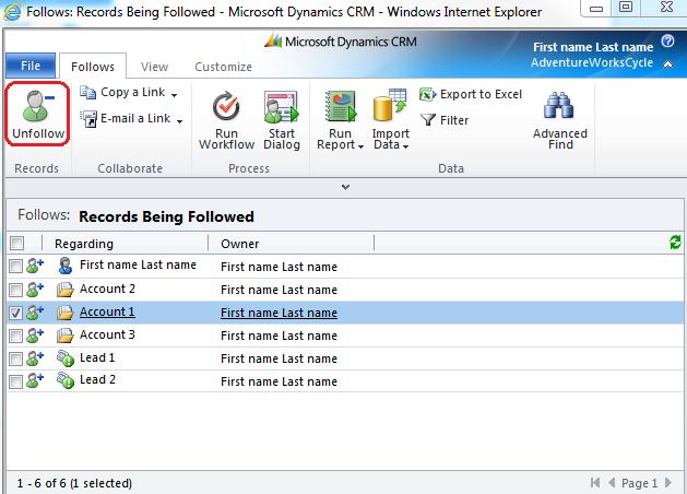 Following and Unfollowing Records in CRM