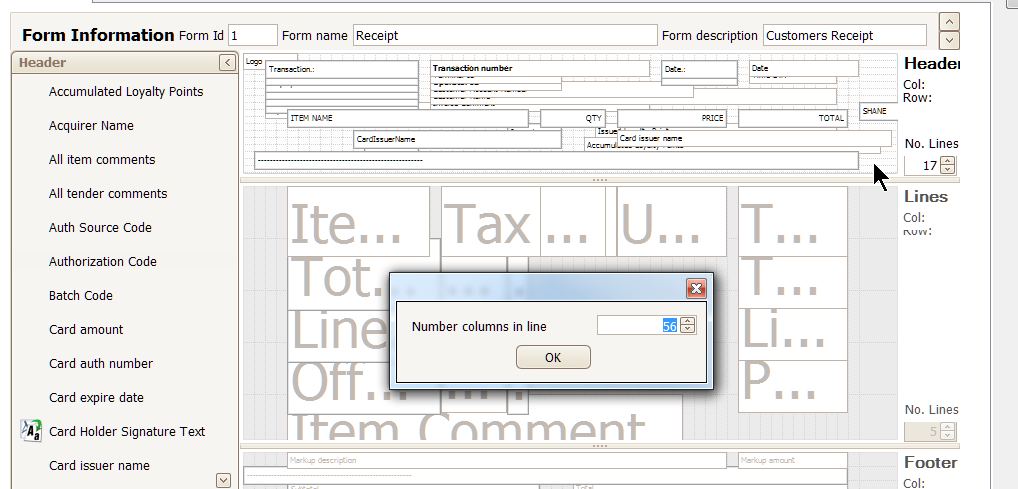 Also, a not-so-obvious feature of the Form Layout designer is the ability to change the number of columns in any of the three sections. Simply right-click on a blank area and select “Number of columns” from the pop-up menu. Change the value to change the width of your paper. A lot of trial and error will be needed to match up font size and paper width, but it should give you some options.