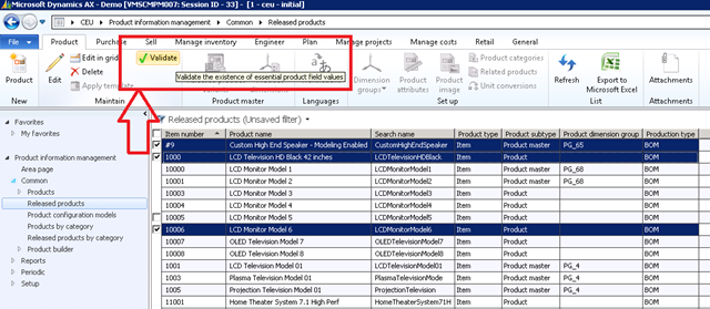 Dynamics AX 2012 provides a new feature that allows you to validate the released product setup and ensure data integrity and overall process readiness. This feature is useful for managing master data and we expect it to be widely used by our partners and customers in order to support the product data life cycle processes, engineering change, approval workflows etc.