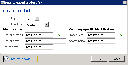 - When you create a new released product from a legal entity, the only property you have to provide is the product number and the item number. Usually those IDs are bound to the automatic number sequence, so you can create a new released product definition with just one click with the mouse.