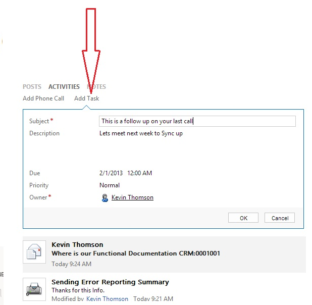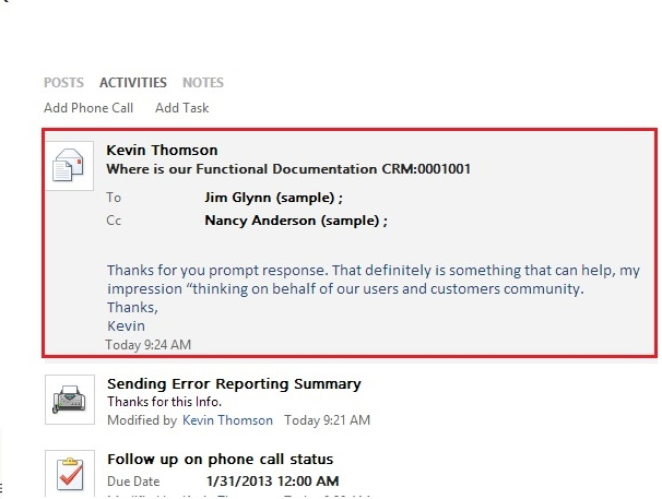 business record as a unified experience. In the CRM system, customer interactions are represented in the form of Activities i.e. Email, Phone Call, Fax, Task, appointment etc. You can see