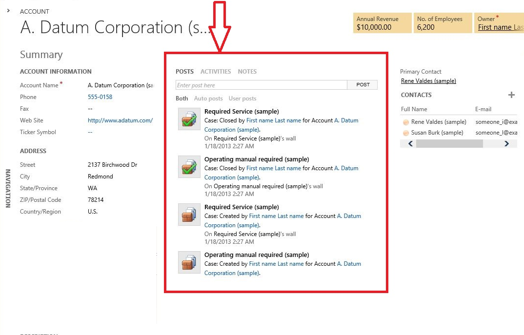 central pane with lots of cool features. This provides you capability to view as well as associate activities with business record in a wall like experience. It also provides capability to make