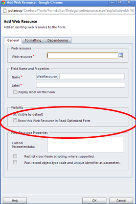 The new forms now can render all form-enabled web resources ( HTML, Silverlight, image) but make sure that if you are using any client-side scripting that it falls within the boundaries that we are exposing. If not, there will be script errors. See Sample: Detect When an Object is Available Using Script in a Web Resource and an Updated Form for more information.
