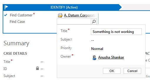 When a customer calls in for a service request, the Customer Service representative can search for cases using the new lookup, and can now quickly create a case.