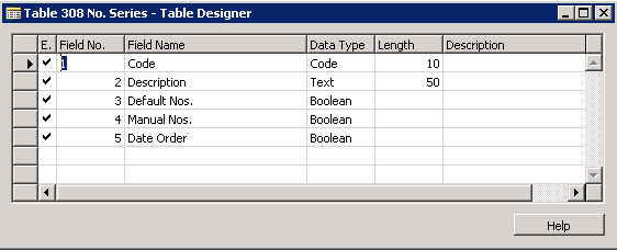 The table which will host the number from the number series, needs the following fields: