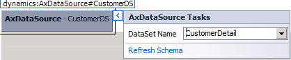 - Locate the AxDataSource – CustomerDS element and select it.