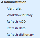 - Open Enterprise Portal and from the left hand navigation refresh the AOD, Dictionary, and Data to ensure we are looking at the latest data.