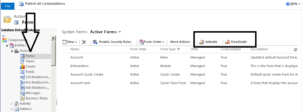 Microsoft Dynamics CRM 2013 brings capability to Activate\Deactivate forms of type Main. In this blog we are going to discuss more about this.