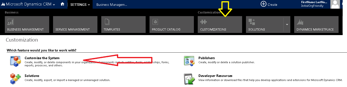 1. Navigate to Settings > Customization  > Customize the System or Solution Explorer