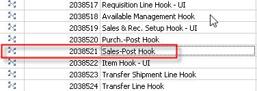 Step 3, it’s time to hook it to its corresponding object and right place in the business logic of that object. You do this by declaring your codeunit as a global in your object, and using the created hook function on its place in the business logic. This way, these one-liners apply: