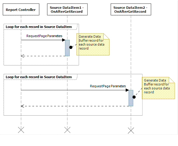 The first technique is mostly used when we want to build the report based on one or more source tables. A lot of processing is required, and we therefore want to store and display information from a temporary recordset. With this technique, we create a data item of the source record and then iterate through this data item to create the temporary recordset. An advantage of this technique is that it allows the user to perform additional filtering on the data source tables since they are added as additional data items and therefore will have their tabs on the request page by default.