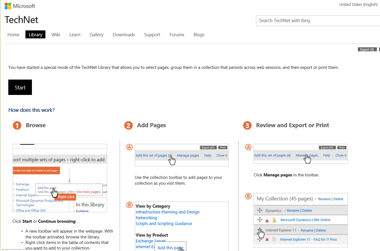 You can also use the Export functionality to create guides from content in different sections of TechNet. For example, we used Export to create a PDF of the following Master Data Management-related content: