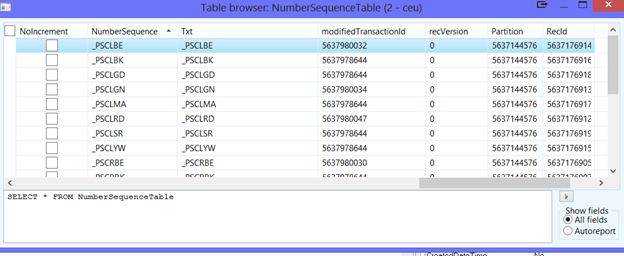 4. Find the NumberSequenceTable