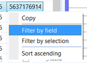 6. Scroll to the Right of the form and right click on one of the number in the RECID field