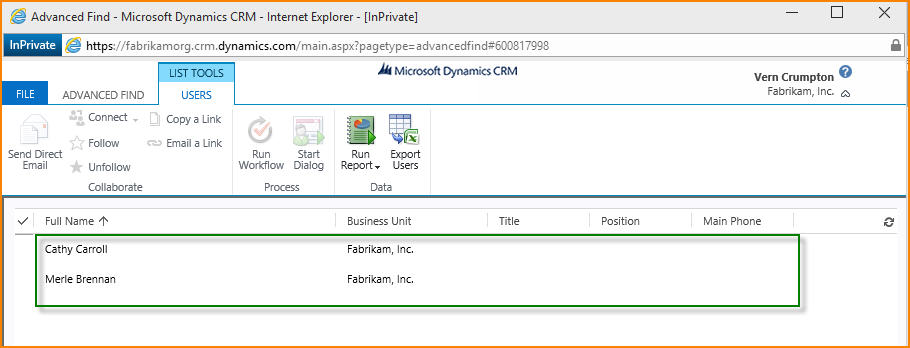 Step 3: On the Advanced Find page, click the Look for: drop down as shown below and select Users