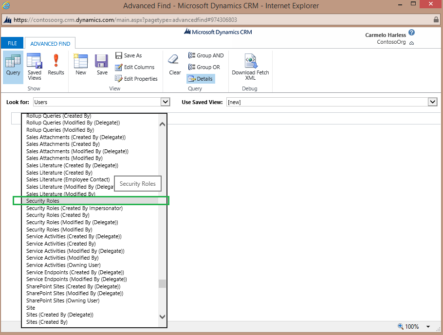 Step 3: Select Security Roles from the list as what to search for. (As shown below)