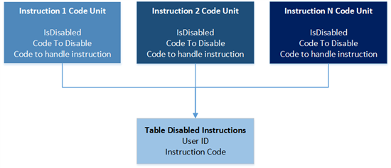 We have a table that stores the instructional code ID and the UserID, so that we can track which user has turned off which instruction. All the logic handling is done from a codeunit. It is the responsibility of the codeunit to show/hide dialogs if needed.
