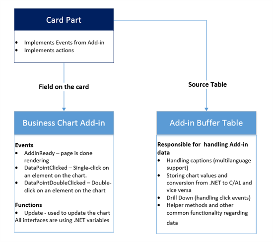 The CardPart page hosts the Business Chart add-in and must use the add-in buffer table as a source table.