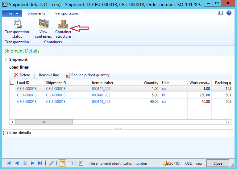 Figure 11. Container structure (from Shipment detail form > Transportation > Container structure)