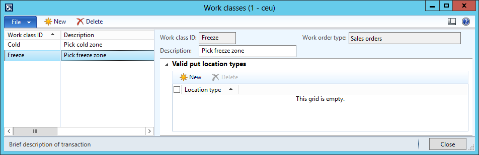 - Warehouse management > Setup > Work > Work classes