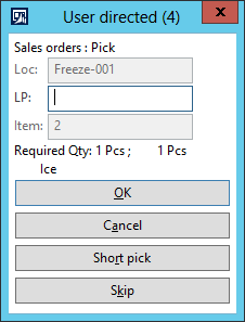 If I select Pick cold zone in the menu, the following screen is displayed.