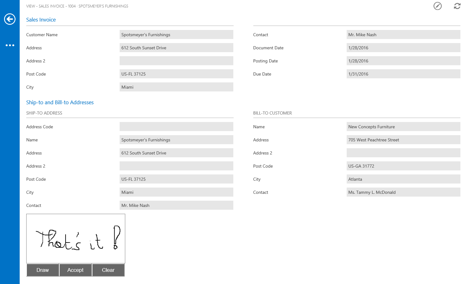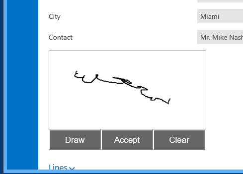 You should see the signature control. Try to draw in with the mouse or with your finger if you are on a touch enabled device.
