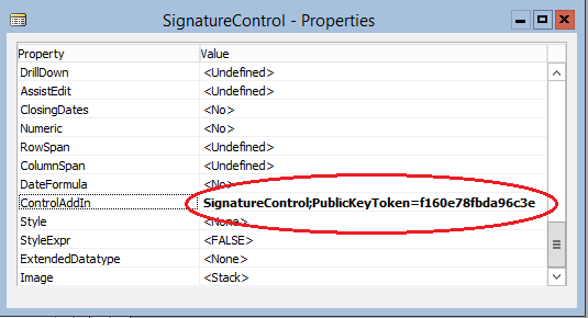 Open any of the Microsoft Dynamics NAV clients (Windows, Web or Tablet) and go to the Control Add-ins page. Create a new entry named SignatureControl and enter the public key token that you saved earlier. Import the zip file.