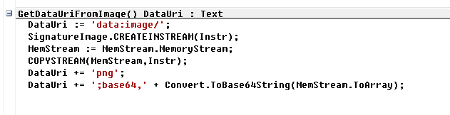 This is where the conversion from between the URL encoded image string and a Microsoft Dynamics NAV BLOB occurs.