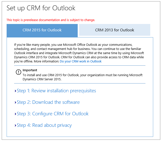 Here’s where to find all the new preview documentation available for the Microsoft Dynamics CRM Online 2015 Update and CRM 2015 (on-premises).
